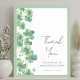 This elegant thank you sign features green watercolor shamrocks or clovers down the left side, perfect for a St. Patrick's Day themed bridal shower. At the top, "Lucky In Love" is written in graceful handwritten script, with a heartfelt "Thank You" displayed prominently in the centre. The bride's name and shower date are shown in a classic serif font on the right side. You can customise the font and background colours to perfectly match your theme. This sign is ideal for expressing gratitude to guests and adding a charming touch to your celebration.