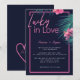 Lucky In Love Neon Pink Tropical Retro Wedding Invitation