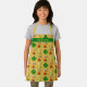 Kid's apron with lucky pattern of horseshoes, 4-leaf clovers, and rainbows with pots of gold. Perfect for the Irish family and kids who love to bake. The apron is gold colour with an all-over pattern and green strip for the childs name.