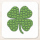 Lots of tiny clovers decorate this large four-leaf clover or shamrock leaf that is sitting on a white background.