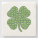 Lots of tiny clovers decorate this large four-leaf clover or shamrock leaf that is sitting on a white background.
