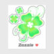 A pretty, four leaf clover with ombre shades of green accented with elegant swirls and two smaller green shamrocks. It's a touch of good luck for St. Patrick's Day! Customise it on this vinyl kiss-cut sticker in two background options. Great for scrapbooking and more!
