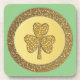 This awesome pack of 6 coasters features a graphic image of a gold coin with two shades of gold. The outer circle has a rough texture. Inside the inner circle of the coin is a textured golden shamrock made up of 3 leaves and a stem.