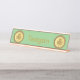I was very pleased when I received my name plate. The brightness of the yellow caught my eye immediately because it was so true to color of the picture. The sturdiness of the material lets me know it won’t get bent or broken easily. The sturdiness of the card stock is a plus as well. The colors even on the chalkboard and apple are true to life colors. The apple looks like you can take a bite out of it.