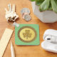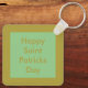 This fun keychain features a graphic image of a gold coin with two shades of gold. The outer circle has a rough texture. Inside the inner circle of the coin is a textured golden shamrock made up of 3 leaves and a stem. There is custom text on the back so you can include a message of your choice. The default message reads Happy Saint Patricks Day.