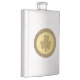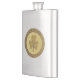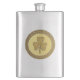 This awesome flask features a graphic image of a gold coin with two shades of gold. The outer circle has a rough texture. Inside the inner circle of the coin is a textured golden shamrock made up of 3 leaves and a stem.