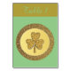 This awesome tablecard features a graphic image of a gold coin with two shades of gold. The outer circle has a rough texture. Inside the inner circle of the coin is a textured golden shamrock made up of 3 leaves and a stem.