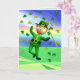 My 3d leprechaun dancing a jig on St. Patrick's Day with shamrocks flying around him.