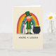 This card shows a cheerful leprechaun centered on a warm beige background, dressed in emerald green with a tall hat and gold buckle, a neat jacket, and green-and-yellow striped trousers. He grips a walking stick and wears a wide, welcoming smile, like he’s sharing a private joke with someone close 💚. His bright orange beard and rosy cheeks stand out against the green outfit, giving his face an easy, friendly warmth. A rainbow arcs behind him 🌈, filling the upper area with bands of color that frame him like a spotlight. To his right sits a black pot tipped slightly forward, packed with gold coins, with a few coins scattered nearby as if just spilled. Below the scene, the phrase “YOU’RE A LEGEND” appears in large, dark lettering centered near the bottom edge. The rainbow curves across the top half while the pot of gold anchors the right side, and the coins glint in small yellow circles against the beige ground.