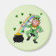 He has it all, this lucky Leprechaun. Fun Irish design features this Leprechaun tossing shamrocks while dancing next to his Pot of Gold at the end of the rainbow.