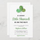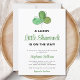 This stylish Baby Shower Invitation is decorated with a green watercolor shamrock and green script typography. Perfect for a St. Patrick's Day or March baby shower.