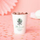 These white "Lucky Little Shamrock" gender neutral baby shower paper cups feature a chic hand-drawn Irish Victorian baby carriage with adorned with a shamrock and soft green tones. Personalise with event details. Ideal for March baby showers, welcoming an Irish baby or a celebration around St. Patrick's Day!