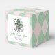 These cute "Lucky Little Thank You" feminine baby shower gift boxes feature a chic hand-drawn Irish Victorian baby carriage with adorned with a shamrock and soft green tones, all against an adorable matching pink and green argyle pattern. Personalise with event details. Printed on front and back. These gift boxes are from the "A Lucky Little Shamrock" baby shower collection.