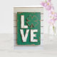 This card features a tall, rustic wooden sign set against whitewashed horizontal planks, with soft, diffused light bringing out the grain and worn paint. Centered on the sign is the word “LOVE,” and the “O” is replaced by a green four-leaf clover ☘️ that feels like a quiet wink between close friends. The background board is a deep emerald green 💚, with scuffed edges that reveal hints of natural wood. The raised letters “L,” “V,” and “E” sit prominently in antique white, their chipped finish giving them a tender, timeworn look, like something kept close over the years. The clover is slightly distressed too, tying it into the aged texture of the sign and adding a gentle, cozy charm. The lettering is placed in the middle of the board and stands out clearly against the green, while the surrounding plank wall stays pale and understated. Fine paint imperfections and subtle shadows along the raised letters and clover add depth across the sign’s surface.