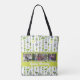 "Lucky Mummy" St. Patrick's Day tote bag. Personalise this charming design for a lucky mum to show off her kids. Perfect for a fresh, modern aesthetic. Cute shamrocks, four leaf clover, flowers, and leaves arranged in stripes make up this delightful pattern. Beautiful spring time greens and yellows with muted blues make this a vibrant yet sophisticated and eye-catching design. White background. Customise this bag with six (6) photos—three (3) on the front and three (3) on the back. Personalise the text on the front and back. Change Mummy to Mama, Mum, Mum, Mummy, Mother, or your favourite name.