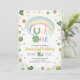 Celebrate a lucky first birthday with this charming rainbow invitation featuring shamrocks, horseshoes, and soft pastel tones. Perfect for a St. Patrick’s Day themed party or a Lucky One birthday celebration. This editable invitation is ideal for boys or girls and sets a joyful, festive tone for your event while matching coordinating party decor.