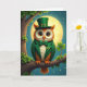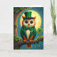 This design shows an anthropomorphic owl perched calmly on a sturdy, gnarled tree branch, dressed for St. Patrick’s Day in emerald green with a top hat, bow tie, and jacket topped with a tiny shamrock pin ☘️. Its rich orange-and-cream feathers look soft and layered, and its oversized black-and-gold eyes seem to linger on you with a gentle, almost flirty curiosity. Behind the owl, a huge full moon in warm honey tones glows like a halo, casting a tender light that makes the scene feel like a quiet midnight meet-up. The night sky is deep teal, dotted with small golden orbs that read like distant stars, adding a dreamy, close-to-the-heart mood 💚. Clusters of green shamrocks sit along the branch and peek from the upper foliage, tying the outfit to the setting and surrounding the owl like a lucky little frame. A short St. Patrick’s Day greeting sits near the top in light lettering that stands out against the dark sky, with a smaller line placed below in matching color. The textures are easy to picture—rough bark underfoot, smooth fabric on the jacket, and fluffy feathers lit by moonlight, with shamrocks scattered along the branch beneath the glowing moon.