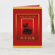 Chinese sculpture into tapestry of dragons background with greeting in Chinese and English.Design on vertical greeting card. Perfect fort Chinese New Year of the pig 2019.