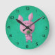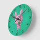 Lucky pig with lucky four leaf clover round clock
