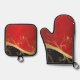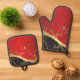 Lucky Red Modern Design Oven Mitt & Pot Holder Set