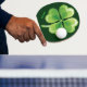 Have the luck of the Irish next time you play ping pong, with this green pink pong paddle, with graphics of a big four leaf clover. Personalise the green text for yourself or as a knock out gift idea.
