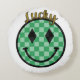 Lucky Smiley Face Green Gold Chequered Happy Face Round Cushion