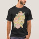 I give wanted to give this a 4 instead of a 5 because these Basic DARK T0shirts run unexpectedly SLIM or Narrow. Which is great if you do not have a potbelly, but I have a paunch. It isn't the shirt's fault that I've got a beer belly. The design and shirt itself is a quality cotton shirt. The color is more of a deep purple, but still a very pretty color. The Basic DARK T-shirts run a bit SLIMMER than the Basic Ts. The neck is a fraction narrower (or seems to be narrower) also. I'm a paunchy middle-aged woman and my neck is 12 inches (31cm) thick and the neckline fell about the same as in the photo of the man, and I had the desire to tug it a bit. So if you're a thick necked man or like loose shirts, be aware these are slimmer shirts. Once I get rid of my lockdown paunch it'll look great. The shirt washed well in cold water with no apparent bleeding. We don't have a dryer, so it hung dry. Did not shrink. Love the colors and the design. The design looks smaller on my shirt than it does on the model on-line. But still, it looks good on the shirt. The printing looks as it does on the model, just the size seems fractionally smaller. Washed garment in cold water, hung dry and design appeared unaffected.