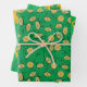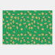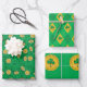 This St. Patrick's Day wrapping paper set features 3 unique green designs: