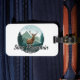 A sturdy luggage tag - with a slot for a card or contact information - with the Stag Mountain Films logo.