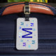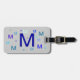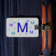 Initial of your choice will be replicated in various sizes and shades of blue. The reverse side allows 2 lines of personalisation for contact numbers (e-mail, phone, etc.)