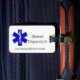ALL of us living with Adrenal Insufficiency should at all times carry an emergency injection (100 mg of solu-cortef). This little luggage tag is the perfect identifier to draw attention to the emergency shot.