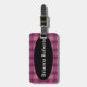 Luggage Tag w/ leather strap - Needlepoint look design - very bohemian feminine with magenta and plum