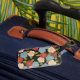 Floral luggage tag featuring blue, hot and soft pinks, green and gold for a touch of bling. Make your suitcase stand out! Original art is hand-painted - not an AI design.