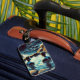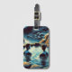 A cute luggage tag depicting two young men relaxing in a quiet and snowy Japanese onsen.