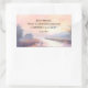 Sticker with Christian inspirational quote scripture depicts a simple pastel watercolor scene with a country road, grey house and trees and a pink sunset background. It features an encouraging Bible Verse from Luke 18:27, Jesus replied, “What is impossible with man is POSSIBLE with GOD.”