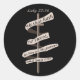 A sword with a scrolling ribbon, with the bible verse Luke 22:36 on it. He that hath no sword, let him sell his garment buy one.