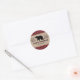 A circular lumberjack style return address label. It features a woodland bear and forest foliage.