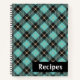 Lumberjack Black Aqua Plaid Pattern Recipe Notebook