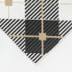 Black and white diagonal "lumberjack" chequered pattern with matte gold grid overlay.