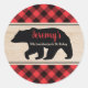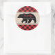 Lumberjack boy birthday party favour sticker with a bear icon personalised with your child's name & birthday message.