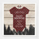 Cute design for a Boy Baby Shower: gorgeous typography on a red buffalo plaid baby suit shape, hatcets, trees on a rustic old wood background. Use Customise tool to add your info. For more, visit please, my Plaid/Lumberjack Party Collection.