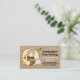 Lumberjack business cards with a burly man with an axe and pipe against a slice of log.