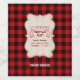 Red Buffalo Plaid Wood Lumberjack Christmas Party design featuring a wood shape, a watercolour banner, Lumberjack Christmas Party script with red buffalo text effect, all on a red buffalo plaid background. Use Customise tool to add your info. For matching items, please, visit my Lumberjack Christmas Party Collection.