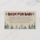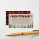 Looking for lumberjack themed, buffalo plaid or flannel book request card for a baby shower? This design features some watercolor pine trees and flannel patterned letters on a Kraft paper background.