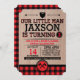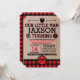 Rugged and rustic, this lumberjack little man invitation features signature red and black plaid, woodgrain, and a burly man beard to celebrate your little man's birthday