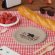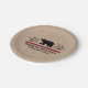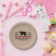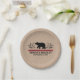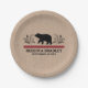 Paper plates featuring a a bear among foliage and a kraft background. Personalise it with the mother to be's name and expecting date. Coordinates with the Lumberjack baby shower collection.