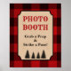 Photo Booth - Grab a Prop & Strike a Pose Sign features a red plaid lumberjack design. Perfect for your lumberjack themed party!
