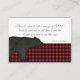 Lumberjack Plaid Bear Boy Shower Bring a Book Enclosure Card. Red and black, buffalo check plaid, lumberjack pattern with moose, deer and forest trees for a rustic boy baby shower theme. "Bring A Book Shower cards" only come in a pack of 100. Enclose them in your shower invitations to encourage your guests to bring a book instead of a card. Copyright.