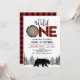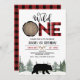 Lumberjack Red Buffalo Plaid Bear 1st Birthday Invitation