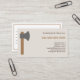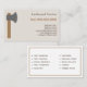 A simple business card with an axe illustration for carpenter, woodworker and lumberjack services (tree removal and pruning, firewood, stump grinding and more). It comes with phone number, full contact and list of services on the back in brown colours!